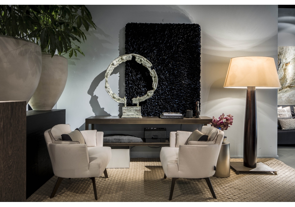 Azzano conçu par Marcel Wolterinck pour Linteloo est un fauteuil avec revêtement en tissu ou cuir, pieds en acier disponible en deux finitions (bronze et bronze). Le coussin de dossier et le cordon sont ton sur ton avec le rembourrage, qui peut être réalisé en contraste sur demande.