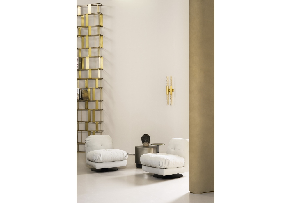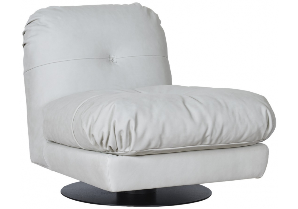 Milano conçu par Paola Navone pour Baxter est un fauteuil avec base pivotante en métal peint noir mat, structure en sapin et revêtement en cuir.