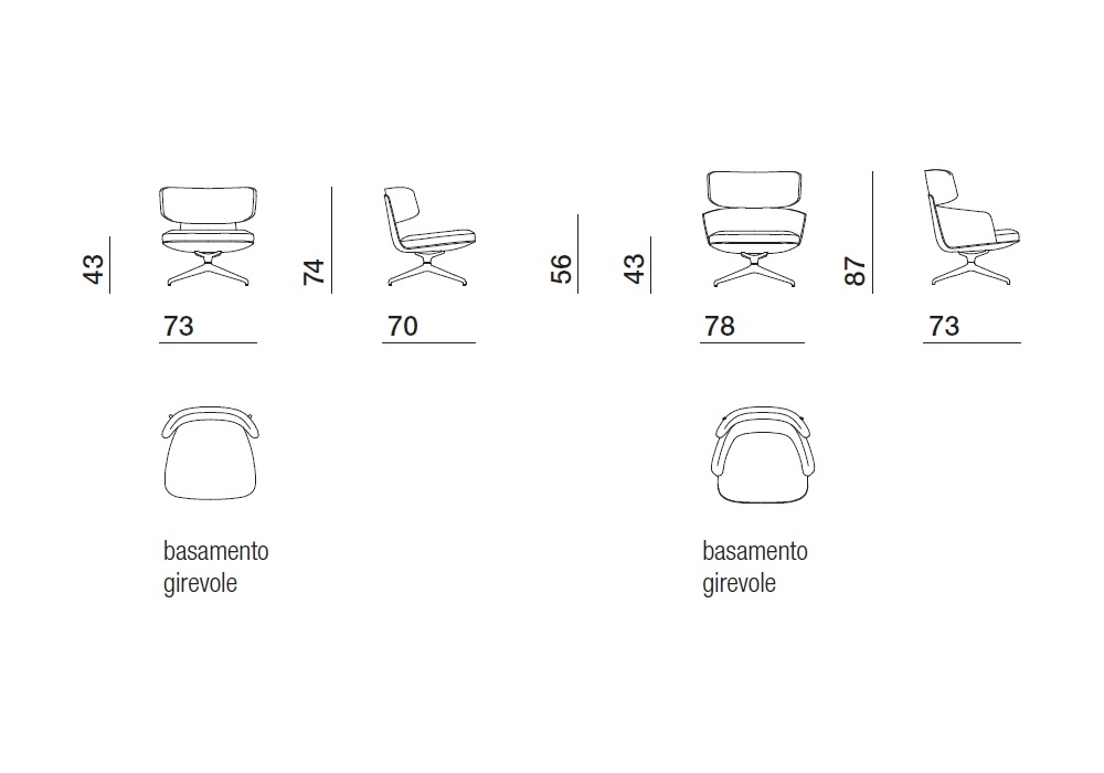 Piccadilly conçu par Rodolfo Dordoni pour Molteni&C est un fauteuil réalisé avec une base pivotante en aluminium ou en étain et un revêtement en tissu ou en cuir dans différentes finitions. Disponible avec dossier bas ou dossier haut.