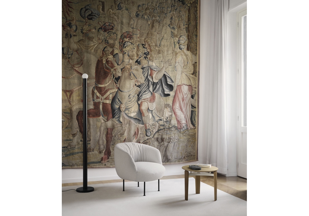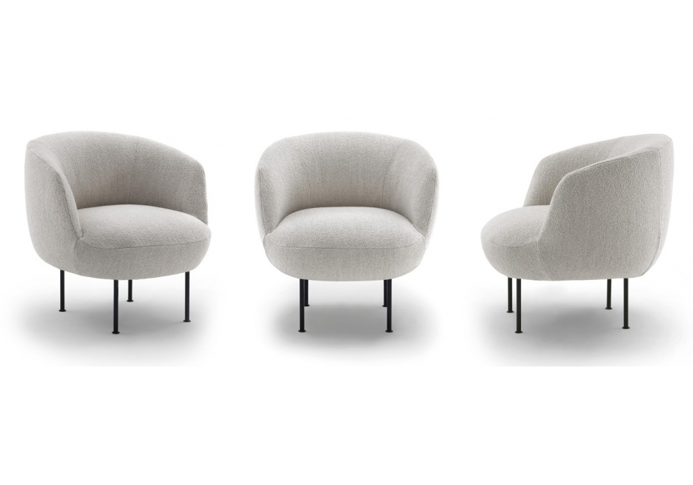 Supplì conçu par Luca Nichetto pour Arflex est un fauteuil avec rembourrage en mousse de polyuréthane moulée / fibre de polyester, revêtement en tissu ou en cuir et pieds en métal laqué. Disponible en 2 versions.