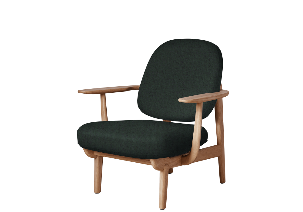 Fred™ conçu par Jaime Hayon pour Fritz Hansen est un fauteuil réalisé avec une base en bois et un revêtement en tissu ou en cuir. Disponible en différentes finitions.