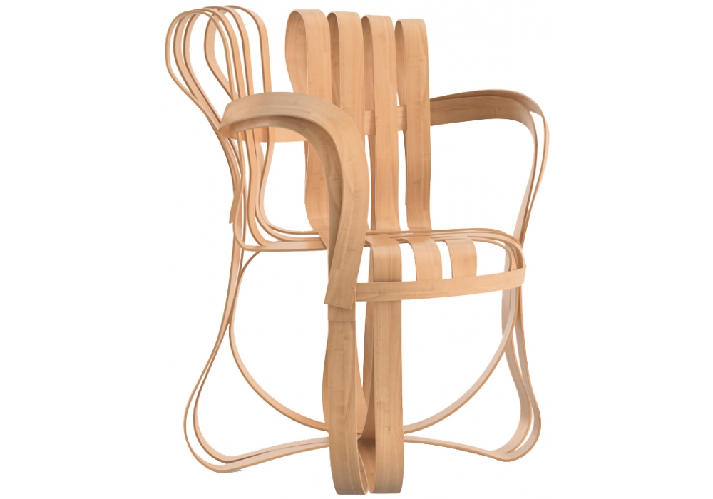 Cross Check conçu par Frank Gehry pour Knoll est un fauteuil réalisé avec des bandes d'érable naturel. Pieds en plastique transparent avec finition mate.
