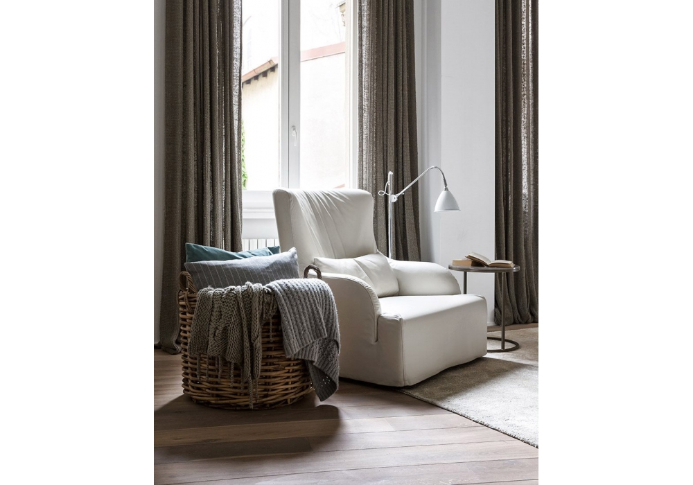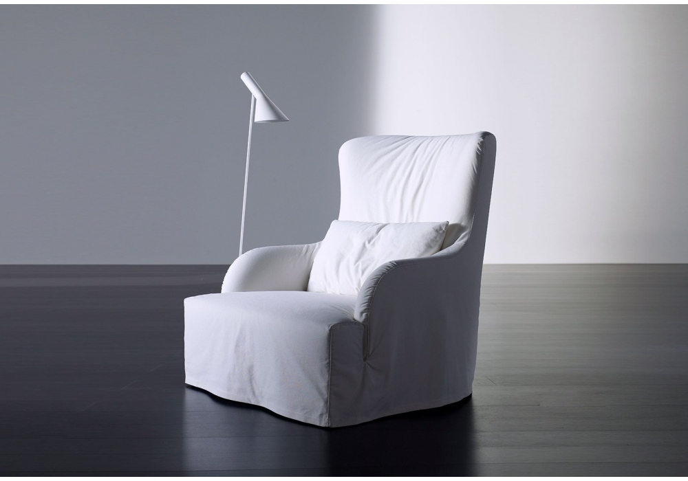 Liu conçu par Andrea Parisio pour Meridiani est un bergère avec structure en bois et rembourrage en polyuréthane indéformable. Pieds en bois teinté black. Coussin lombaire en plumes renforcées. Revêtement disponible en tissu ou cuir.