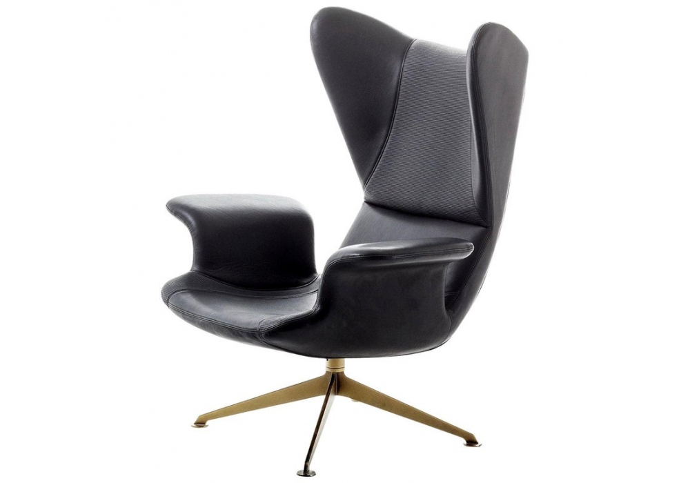 Longwave conçu par Diesel Creative Team pour Diesel with Moroso est un fauteuil réalisé en mousse injectée sur une structure interne en acier. Le fauteuil est recouvert de cuir brodé. Base en acier pivotante disponible en deux finitions de peinture. Il est également disponible avec pouf.
