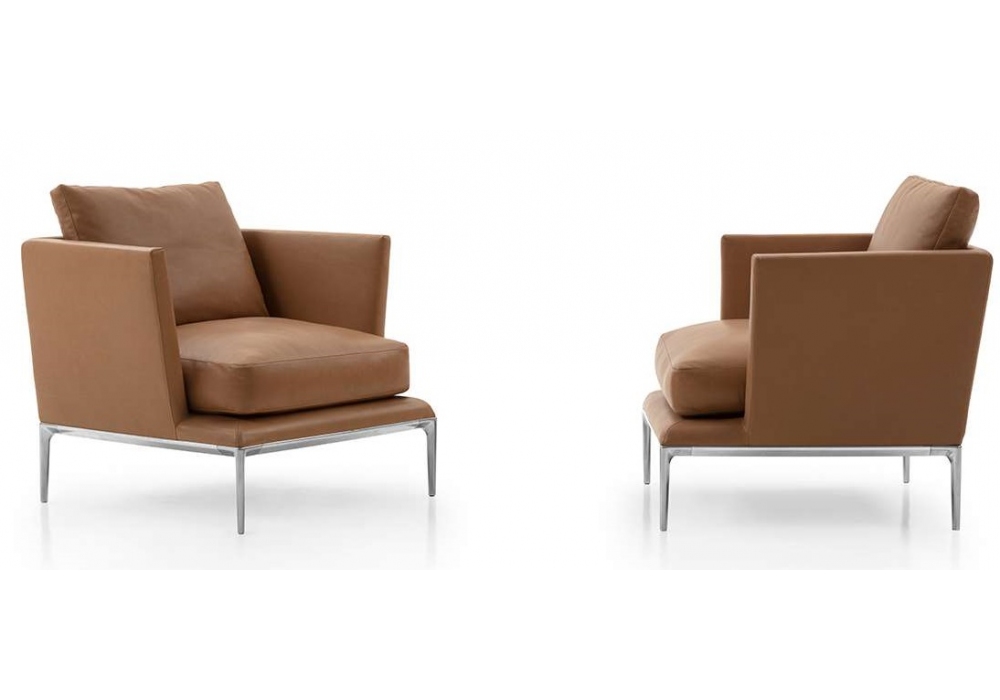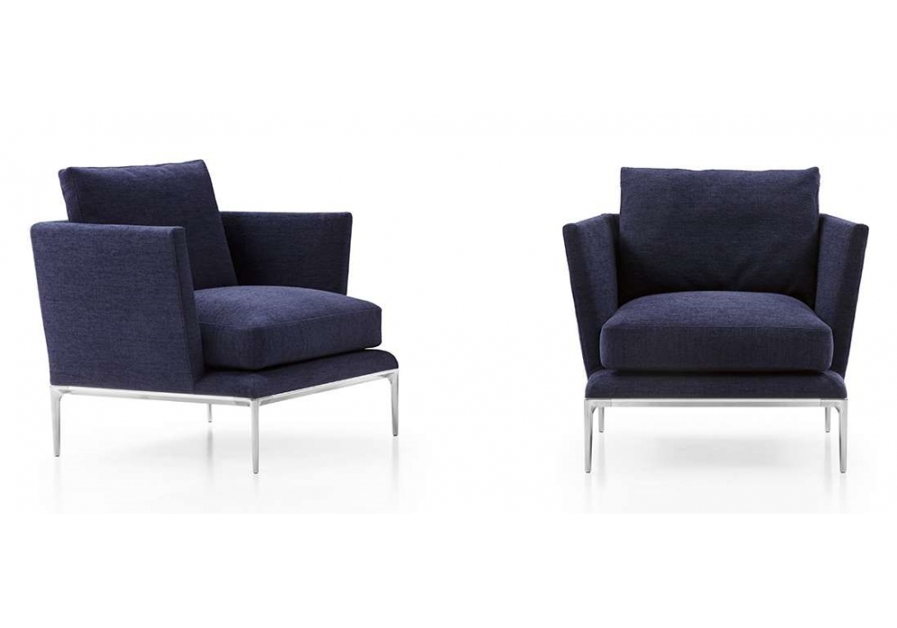 Atoll conçu par Antonio Citterio pour B&B Italia est un fauteuil avec structure en aluminium en finition polie brossée, chromée noire ou vernie étain. Rembourrage disponible en tissu ou en cuir.