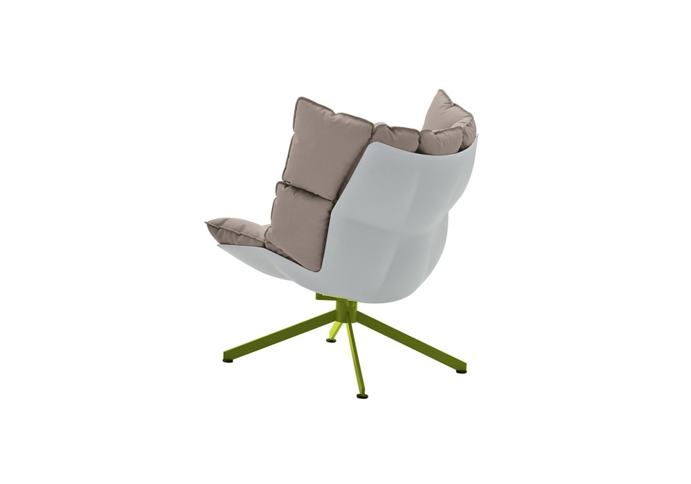 Husk conçu par Patricia Urquiola pour B&B Italia est un fauteuil avec coque en matériel plastique Hirek® blanc, noir ou tortora. Piétement en aluminium verni blanc,noir, orange, bleu clair ou vert acide. Rembourrage coque: fibre de polyester, housse en coton. Revêtement disponible en tissu ou cuir.