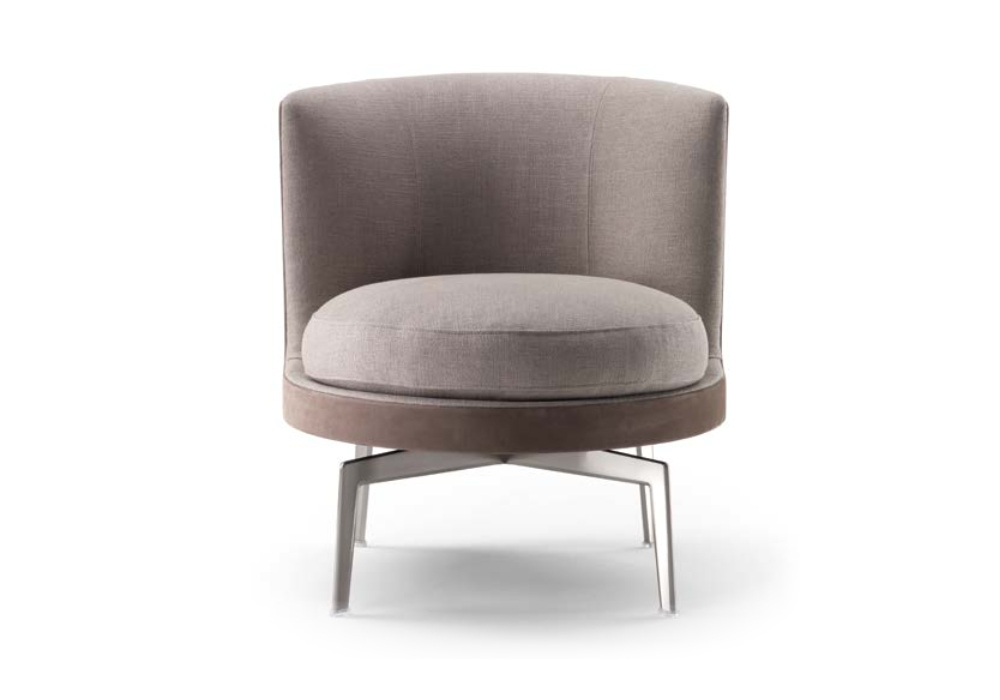 Feel Good conçu par Antonio Citterio pour Flexform est un fauteuil pivotant en polyuréthane structurel et mousse de polyuréthane, tandis que les coussins d'assise sont généreusement rembourrés de duvet d'oie. Pour assurer le plus haut niveau de confort, la version Feel Good Soft est équipée d'un rembourrage supplémentaire dans le dossier et d'une couche supplémentaire de Dacron et de mousse à mémoire de forme. Il est disponible avec une base en bois et des pieds en noyer canaletto massif ou en frêne, ou avec une base essentielle et des pieds en métal. Il est recouvert de cuir ou de tissu.