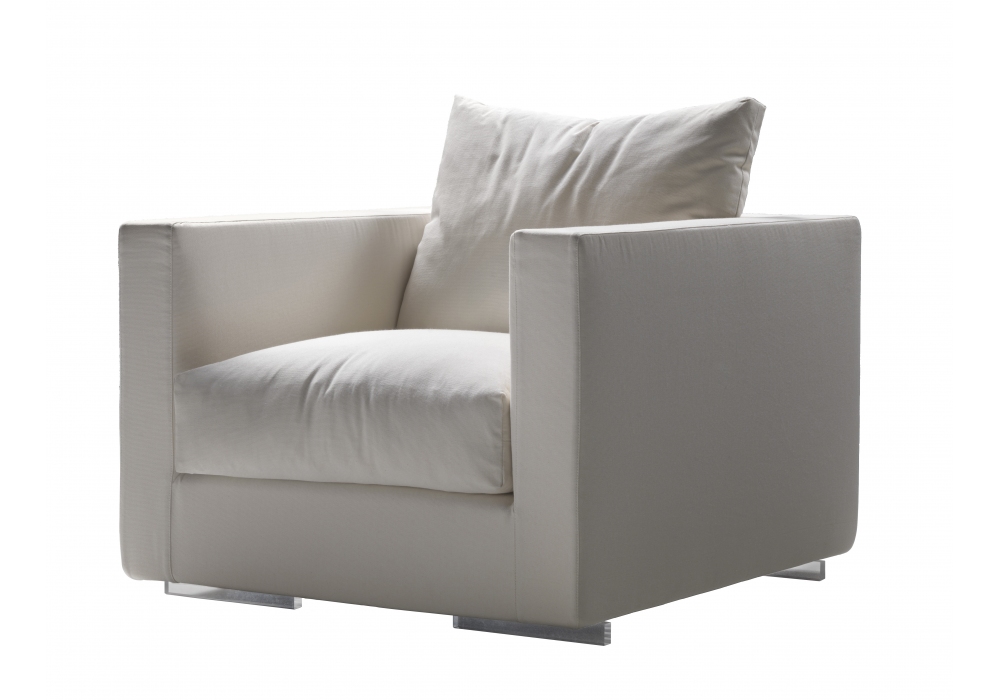 Magnum conçu par Design Center pour Flexform est un fauteuil réalisé avec une structure en bois massif; coussins d'assise en duvet d'oie avec mousse polyuréthane et insert en dacron; coussins de dossier en duvet et fibre d'oie et pieds en méthacrylate transparent. Le fauteuil est disponible avec un revêtement en cuir ou en tissu.