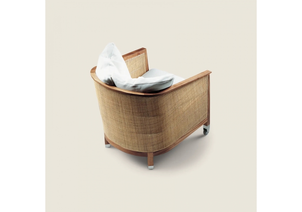 Mozart conçu par Design Center pour Flexform, est un fauteuil composé d'une structure en bois et métal, d'une assise en métal rembourrée en polyuréthane, de pieds arrière en bois massif et d'un coussin de dossier rembourré en duvet d'oie ou en dacron. Le fauteuil est disponible avec revêtement amovible en tissu ou en cuir.