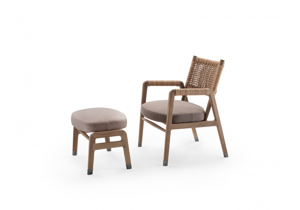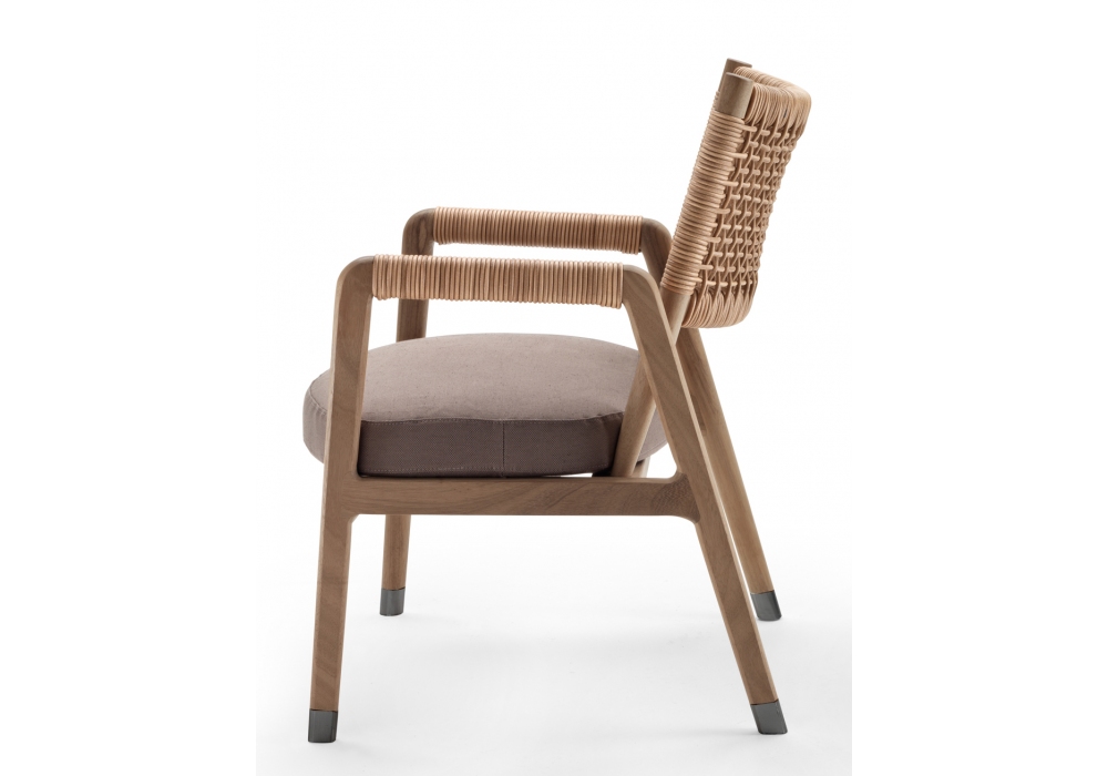Ortigia conçu par Design Center pour Flexform est un fauteuil composé de structure en noyer massif Canaletto ou en frêne, dossier en cuir de peau tressé, pieds en zamak moulé sous pression et assise en contreplaqué rembourré en polyuréthane recouvert de cuir ou de tissu.