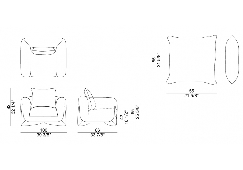 Softbay conçu par Giuseppe Viganò pour Porada est un fauteuil réalisé avec quatre pieds en noyer canaletta massif et revêtement en tissu. Structure interne en contreplaqué de bouleau, sapin massif et sangles élastiques. Rembourrage en mousse de polyuréthane à densité différenciée. Coussin d'assise en mousse de polyuréthane recouverte de ouate blanche couplée à du coton et du velours. Coussin de dossier avec rembourrage en plumes.