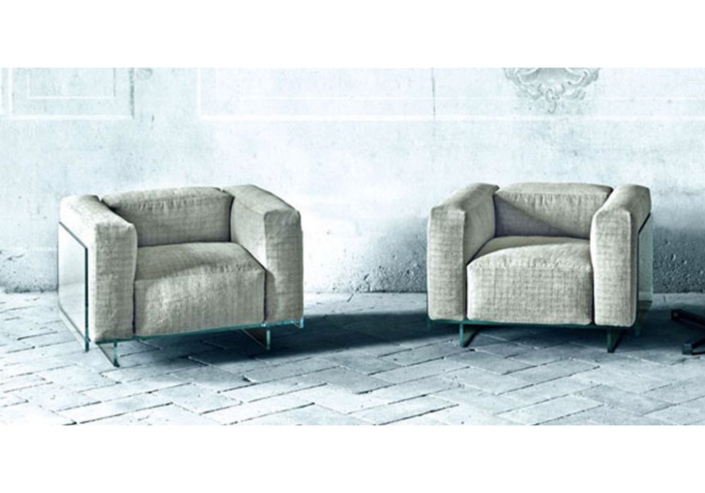 Crystal Lounge conçu par Jean Marie Massaud pour Glas Italia est un fauteuil avec structure en extralight transparent mm. 15 façonnés, trempés et collés. La structure contient un siège rembourré avec revêtement amovible, disponible en différents tissus.