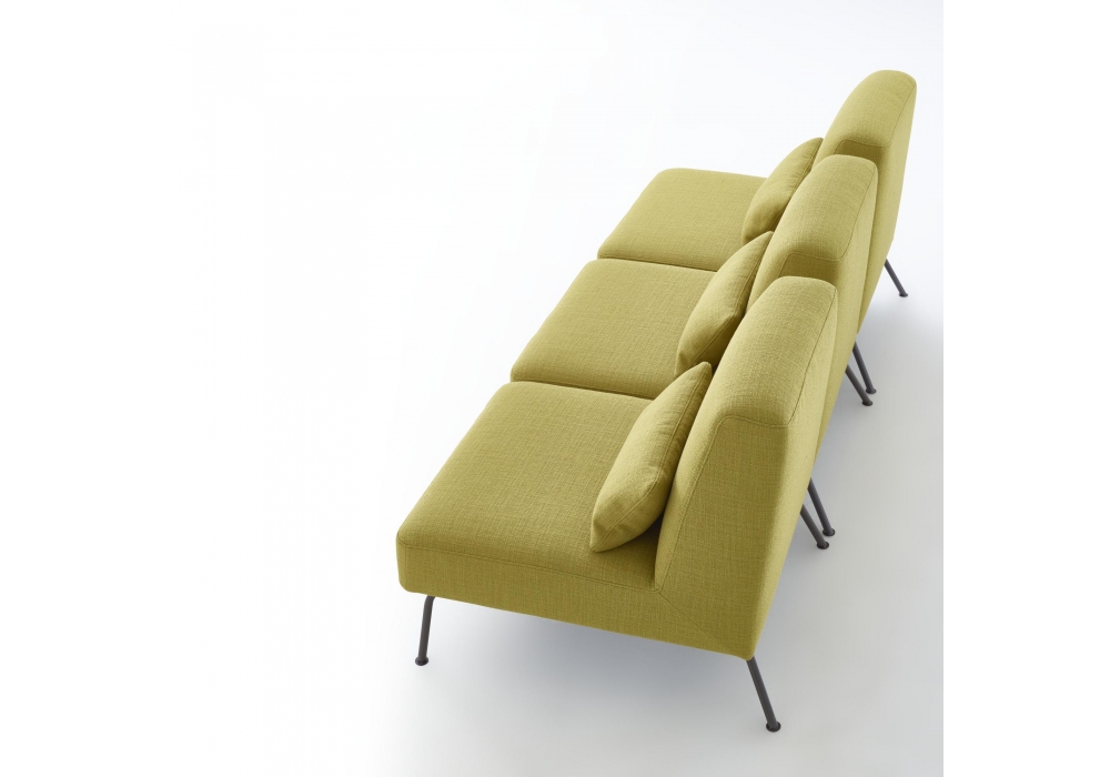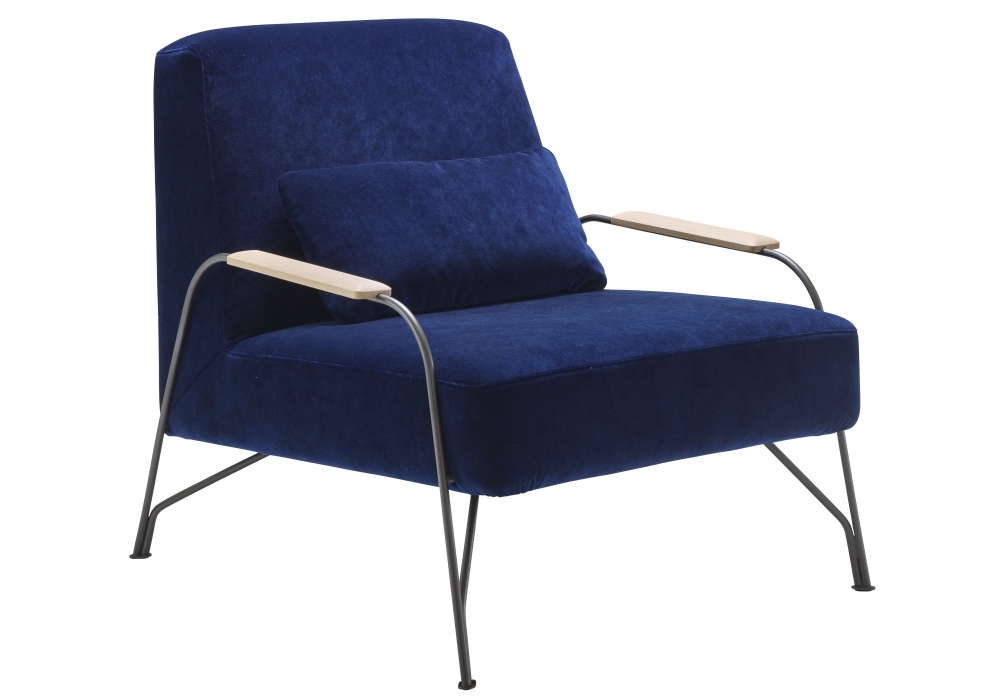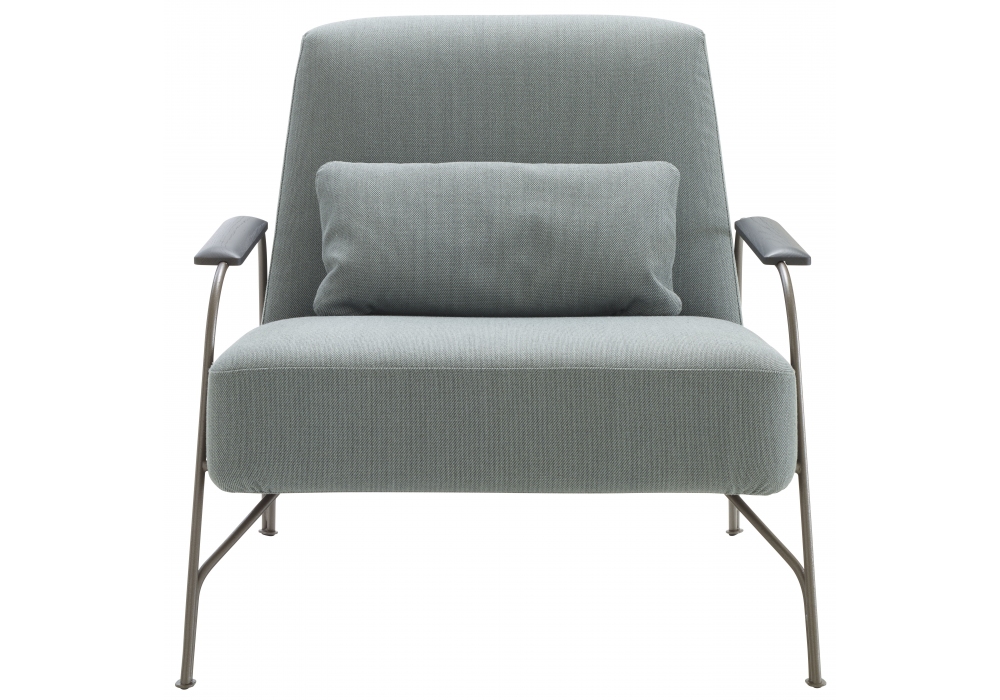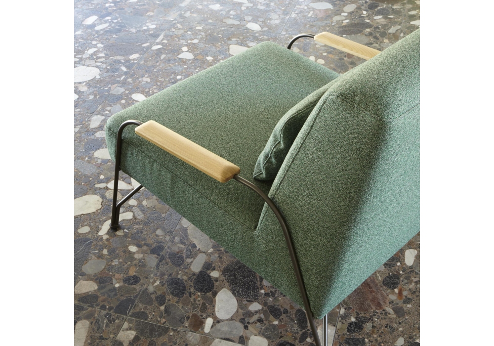 Humphrey conçu par Evangelos Vasileiou pour Ligne Roset est un fauteuil avec structure en fil d'acier laqué (gunmetal). Rembourrage en mousse de polyuréthane haute résilience. Revêtement en tissu ou cuir. Disponible en 3 versions: sans accoudoirs, avec accoudoirs en chêne naturel ou chêne teinté noir.