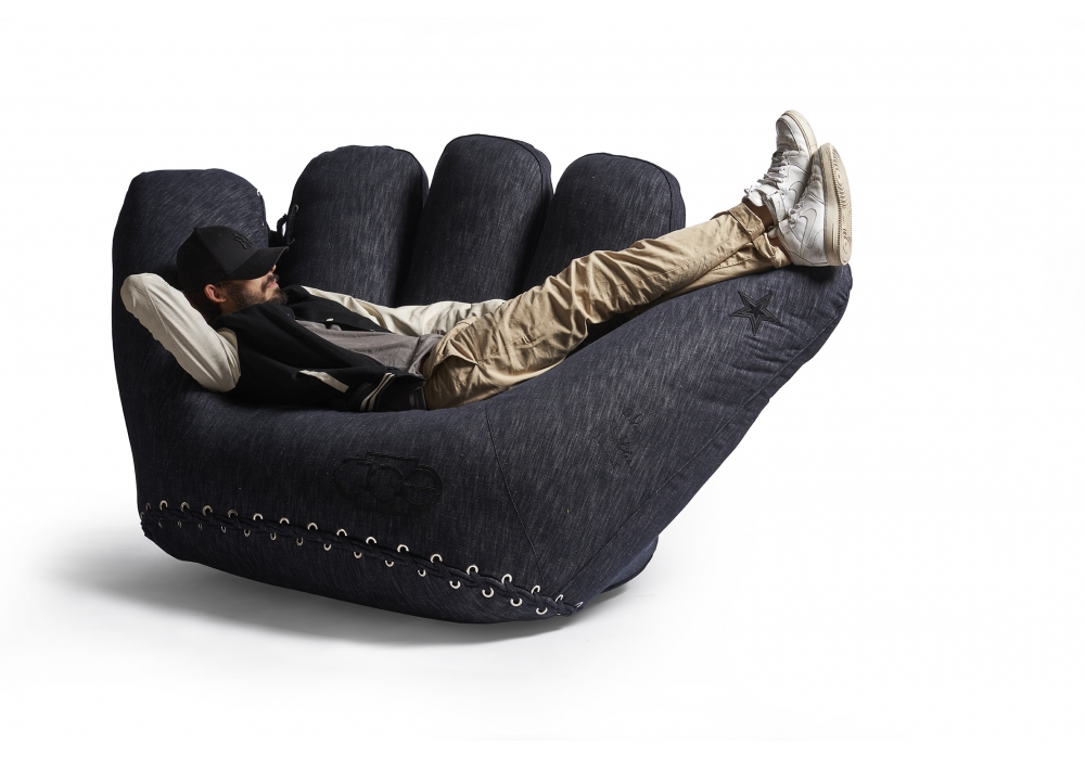 Joe Jeans conçu par De Pas, D'Urbino, Lomazzi pour Poltronova est un fauteuil monté sur roues invisibles réalisé avec une structure en acier, un rembourrage en polyuréthane préformé et un revêtement en coton et jersey de soie de haute qualité.