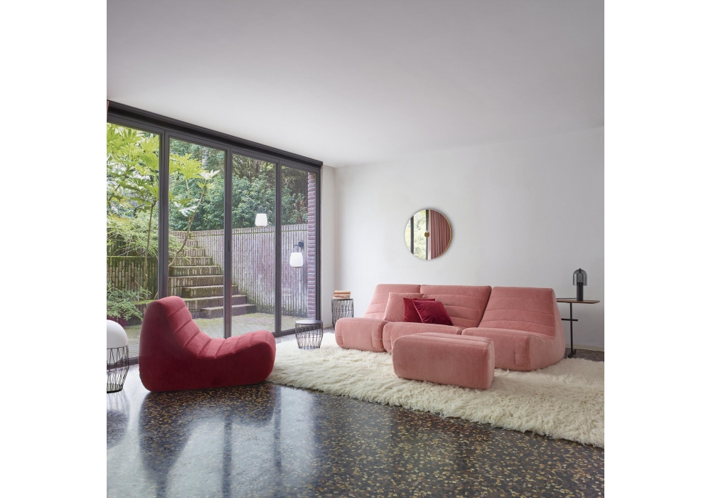 Saparella conçu par Michel Ducaroy pour Ligne Roset est un fauteuil avec assise et dossier rembourrés en mousse de polyuréthane Bultex à haute résilience. Point baguette de 5 mm. Revêtement disponible en tissu ou cuir. Aussi disponible en 2 modèles. Pouf/repose-pieds en option.