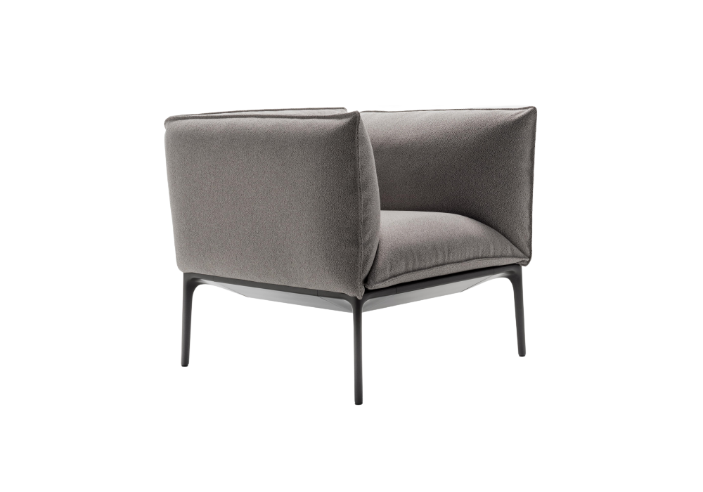 Yale X conçu par Jean Marie Massaud pour MDF Italia est un fauteuil avec structure en aluminium extrudé avec sangles élastiques et pieds en aluminium moulé sous pression, laqué mat en différentes couleurs. Les coussins du dossier, de l'assise et des accoudoirs sont rembourrés de mousse de polyuréthane, avec revêtement déhoussable en tissu ou en cuir.