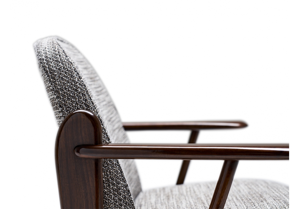 T-Bone conçu par Jaime Hayon pour Ceccotti est un fauteuil réalisé en noyer ou en frêne. L'assise et le dossier sont en contreplaqué de peuplier. Les coussins d'assise et de dossier sont disponibles avec un revêtement en tissu ou en cuir.