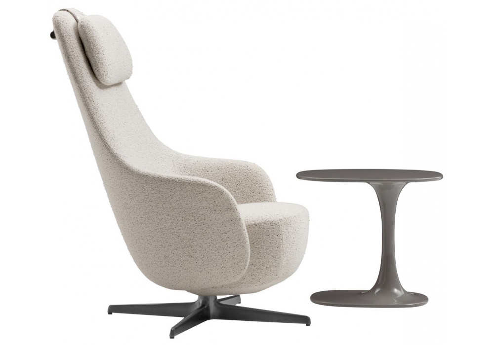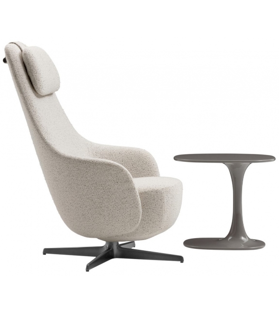 Harbour Laidback conçu par Naoto Fukasawa pour B&B Italia est un fauteuil pivotant avec mécanisme d'inclinaison et base à quatre rayons en aluminium.Il a un mécanisme, parfaitement caché dans le cadre, qui permet le mouvement simultané du dossier et de l'assise. Harbour Laidback comprend également un appui-tête rembourré réglable en hauteur avec contrepoids et peut être combiné avec un repose-pieds assorti. Le revêtement est disponible en cuir ou en tissu.