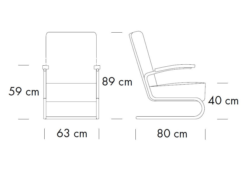 S 411 conçu par Thonet est un fauteuil avec structure en acier tubulaire chromé. Assise et dossier rembourrés avec revêtement en tissu, cuir ou cuir. Accoudoir en hêtre, en différentes finitions. Le fauteuil est également disponible en deux tailles et avec la possibilité d'ajouter un repose-pieds dans la même finition que le fauteuil.