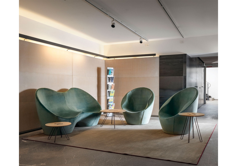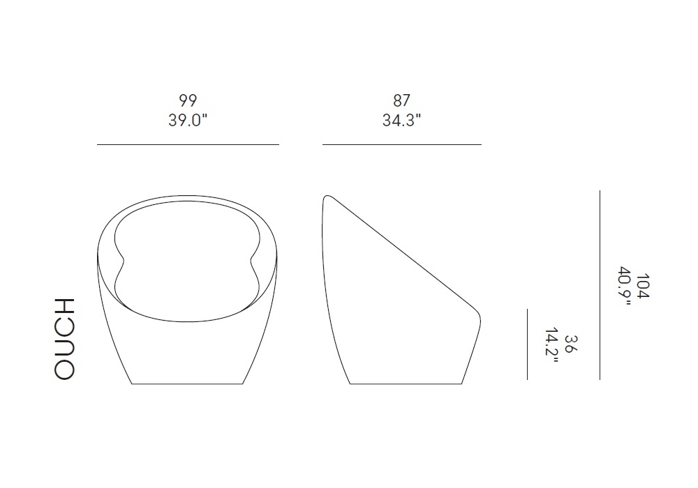 Ouch conçu par Karim Rashid pour Casamania & Horm est un fauteuil à la forme voluptueuse, organique et ergonomique. Fabriqué en mousse ignifuge injectée avec structure métallique interne et entièrement recouvert de tissu ou de cuir non déhoussable.