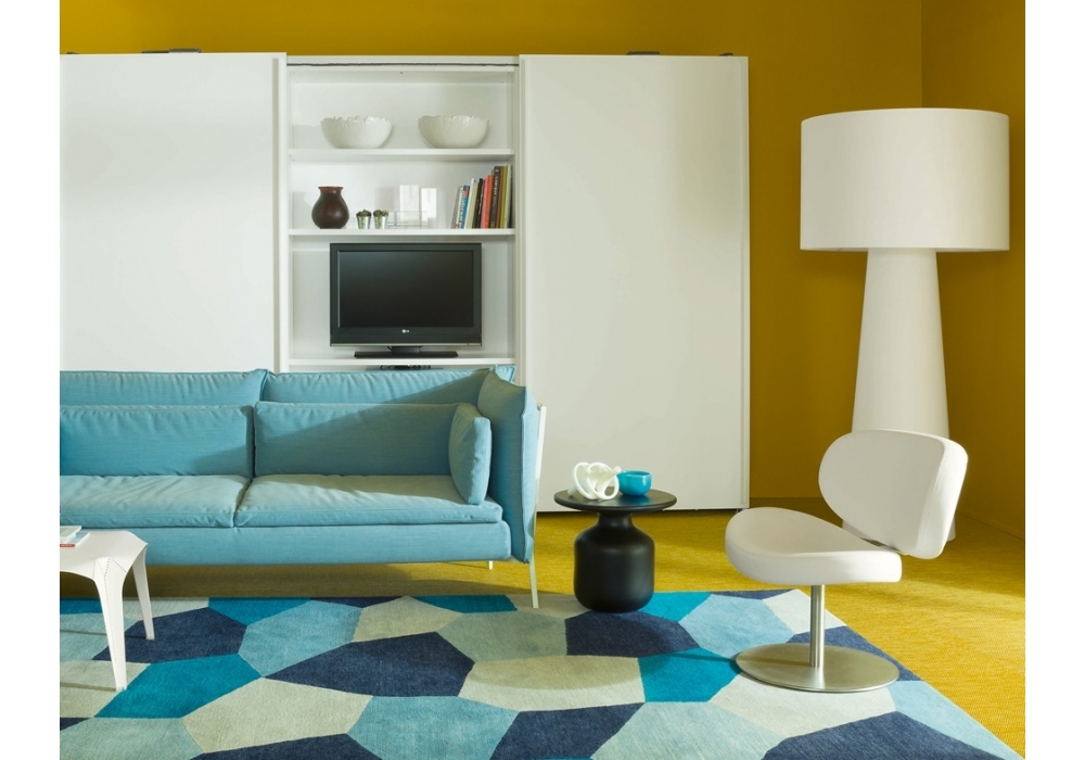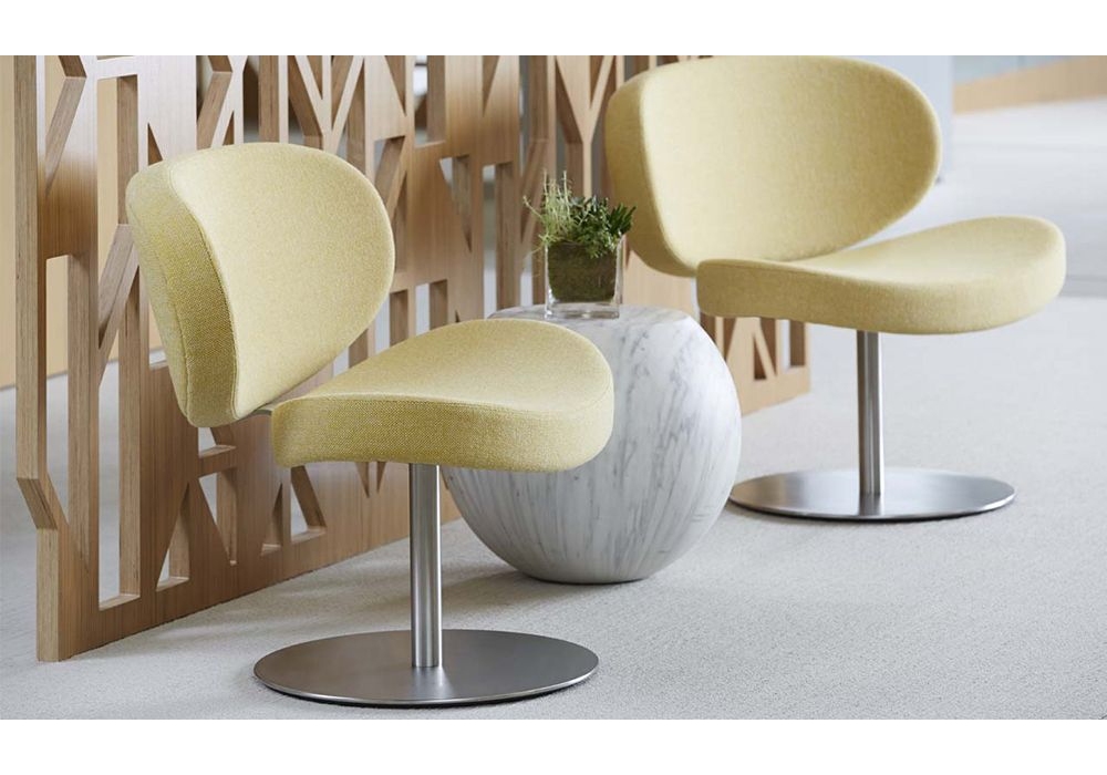 Sunset conçu par Christophe Pillet pour Cappellini est un fauteuil pivotant avec base en métal en différentes finitions, assise et dossier rembourrés. Revêtement fixe en cuir ou en tissu.