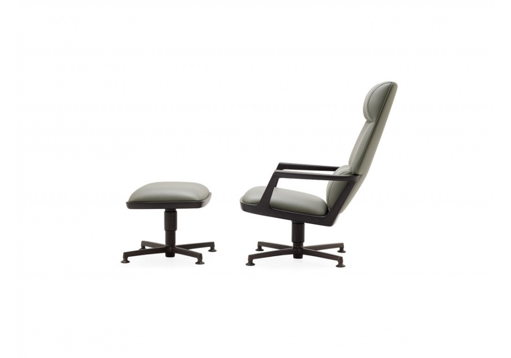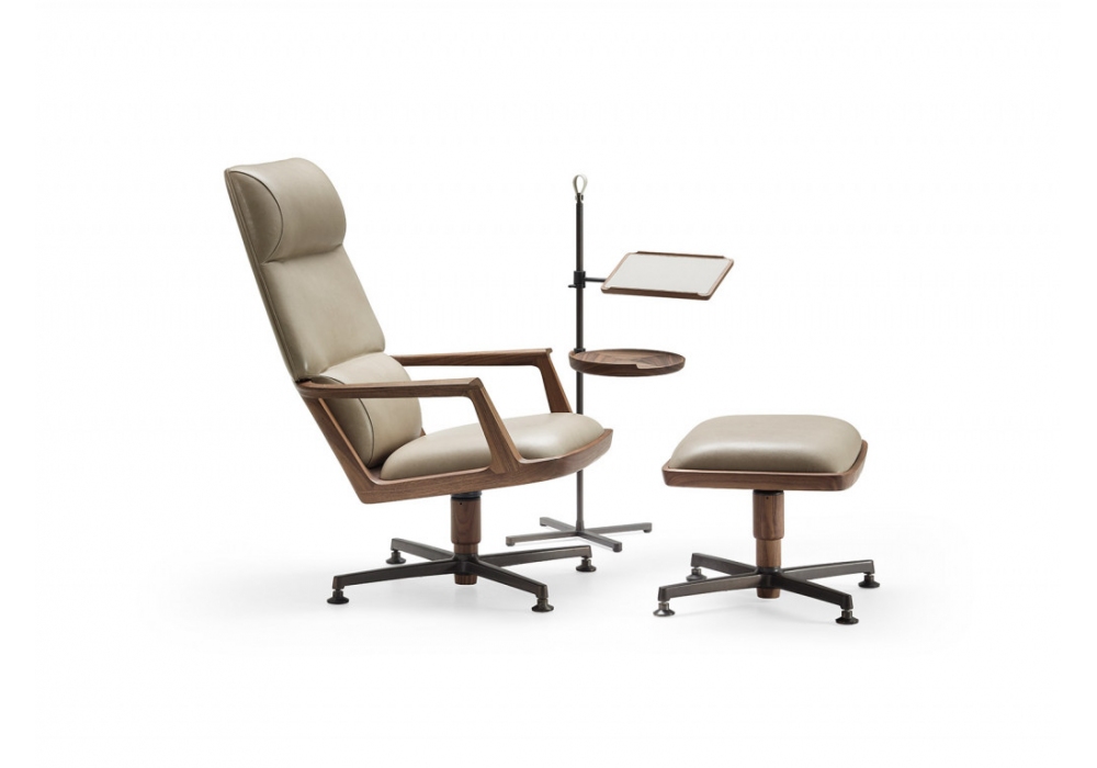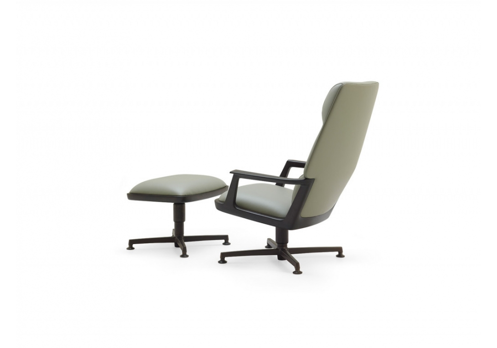 Pigra conçu par Giuseppe Casarosa pour Ceccotti Collezioni est un fauteuil avec repose-pieds. La base comprend quatre rayons en aluminium avec une finition bronze qui soutiennent la structure. La chaise est disponible recouverte de tissu ou de cuir.