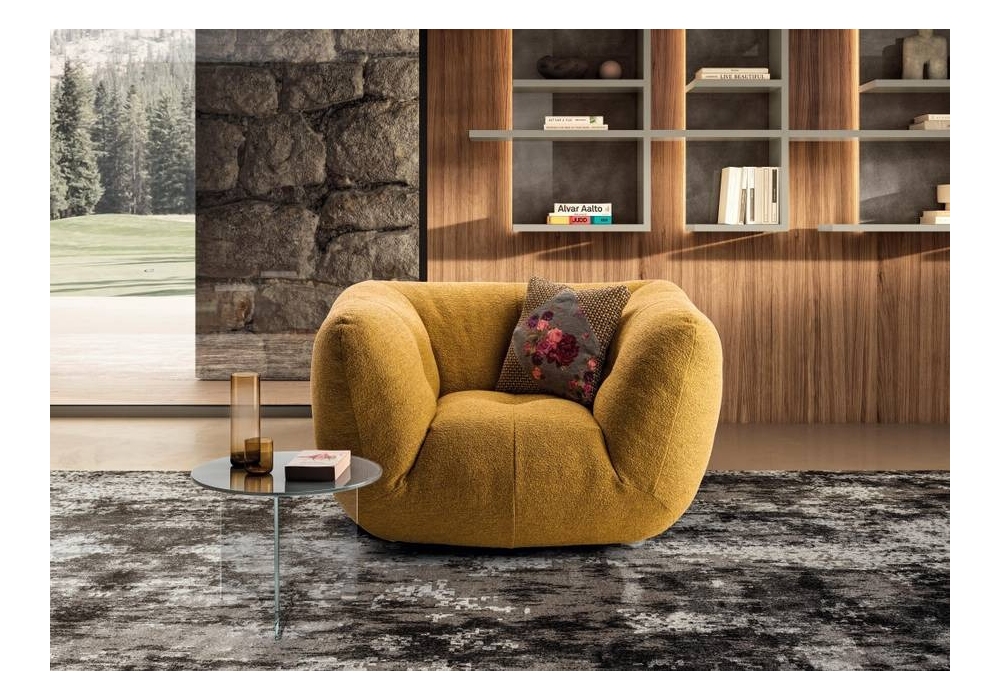 Happening conçu par Mauro Lipparini pour Lago est un fauteuil rembourré avec ou sans accoudoirs. Revêtement en tissu.