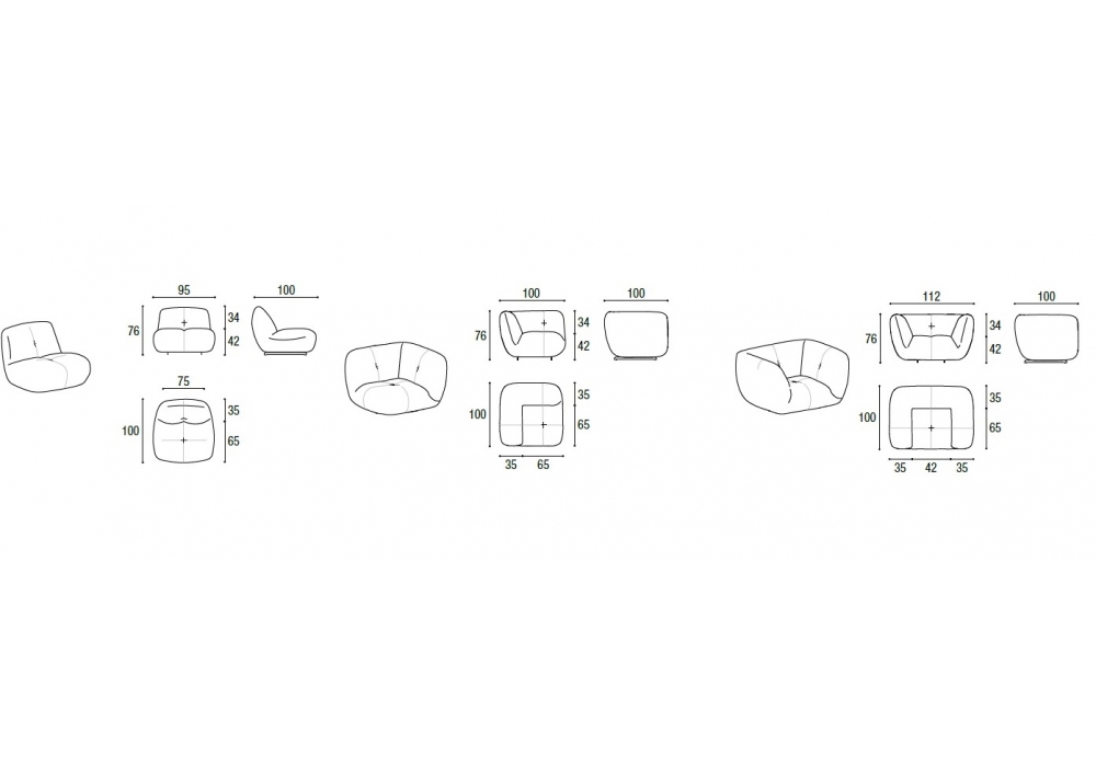 | Dimensions | 95 x 100 x H 76 cm; 100 x 100 x H 76 cm; 112 x 100 x H 76 cm. |