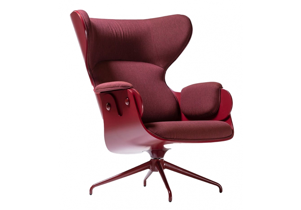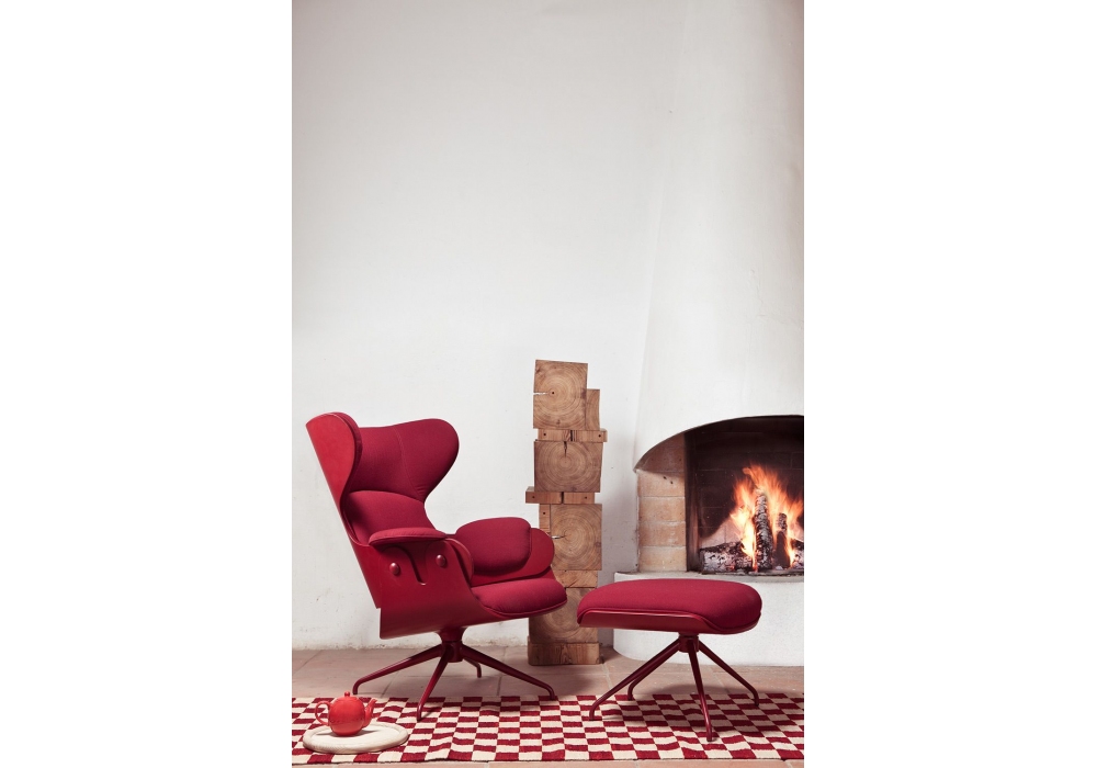 Lounger conçu par Jaime Hayon pour BD Barcelona est un fauteuil unicolore avec structure de base en fonte d'aluminium, assise et dossier en contreplaqué et plaqué en bois de hêtre. Disponible avec repose-pieds.