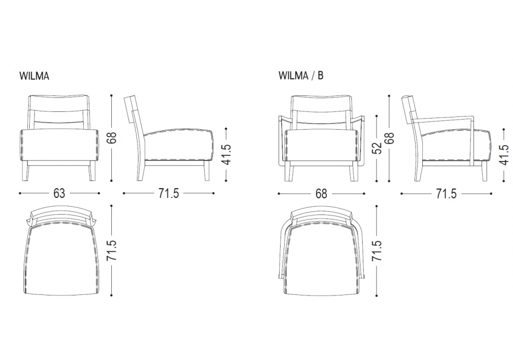 Wilma conçu par Terry Dwan pour Riva 1920 est un fauteuil avec structure en bois massif, avec dossier avec bord naturel et siège rembourré confortable recouvert de cuir ou de tissu avec coutures apparentes. Disponible dans la version avec ou sans accoudoirs.