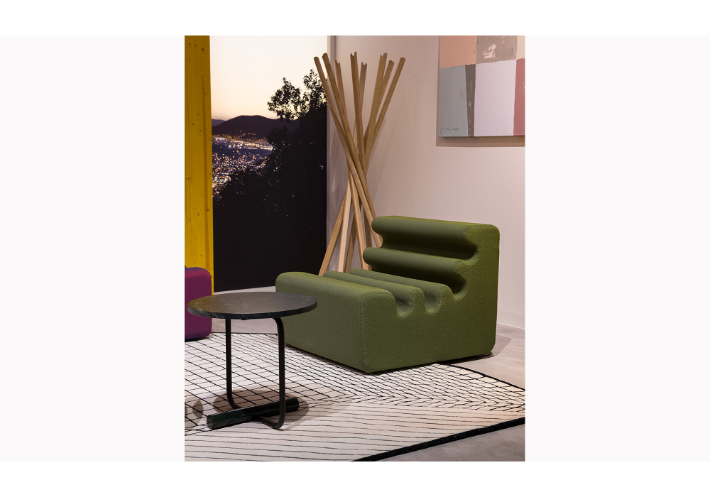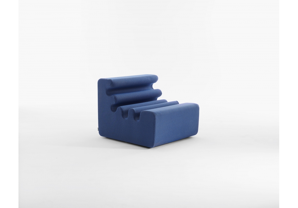 870 Karelia conçu par Liisi Beckmann pour Zanotta est un fauteuil avec structure en mousse de polyuréthane de différentes densités. Revêtement extérieur amovible en tissu biélastique.