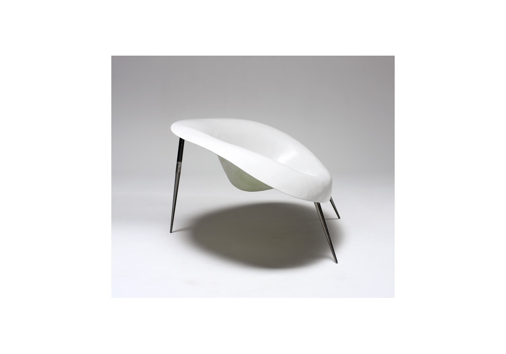 Nido conçu par ImperfettoLab est un fauteuil en fibre de verre et base en métal. Disponible en différentes finitions.