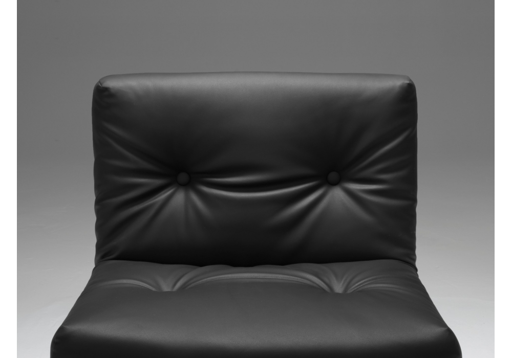 Chris conçu par ImperfettoLab est un fauteuil en fibre de verre et base en métal. Assise rembourrée avec revêtement en similicuir.