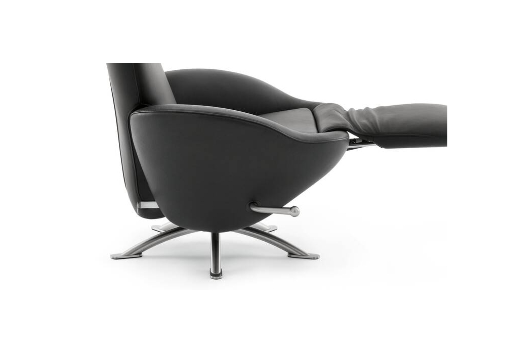 K10 Dodo conçu par Toshiyuki Kita pour Cassina est un fauteuil réalisé avec une structure en acier tubulaire, assise et dossier avec sangles élastiques, rembourrage en mousse de polyuréthane et ouate de polyester et revêtement en tissu ou en cuir. Piètement pivotant en tube d'acier nickelé satiné.