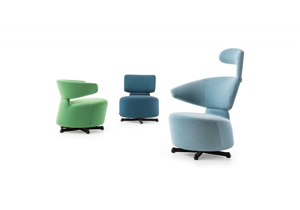 K06 Aki - Biki - Canta conçue par Toshiyuki Kita pour Cassina est une collection de fauteuils pivotants à base fixe ou à roulettes. Structure en tube d'acier avec sangles élastiques, rembourrage en mousse polyuréthane et ouate de polyester, et revêtement en tissu ou en cuir. Disponible en plusieurs modèles.