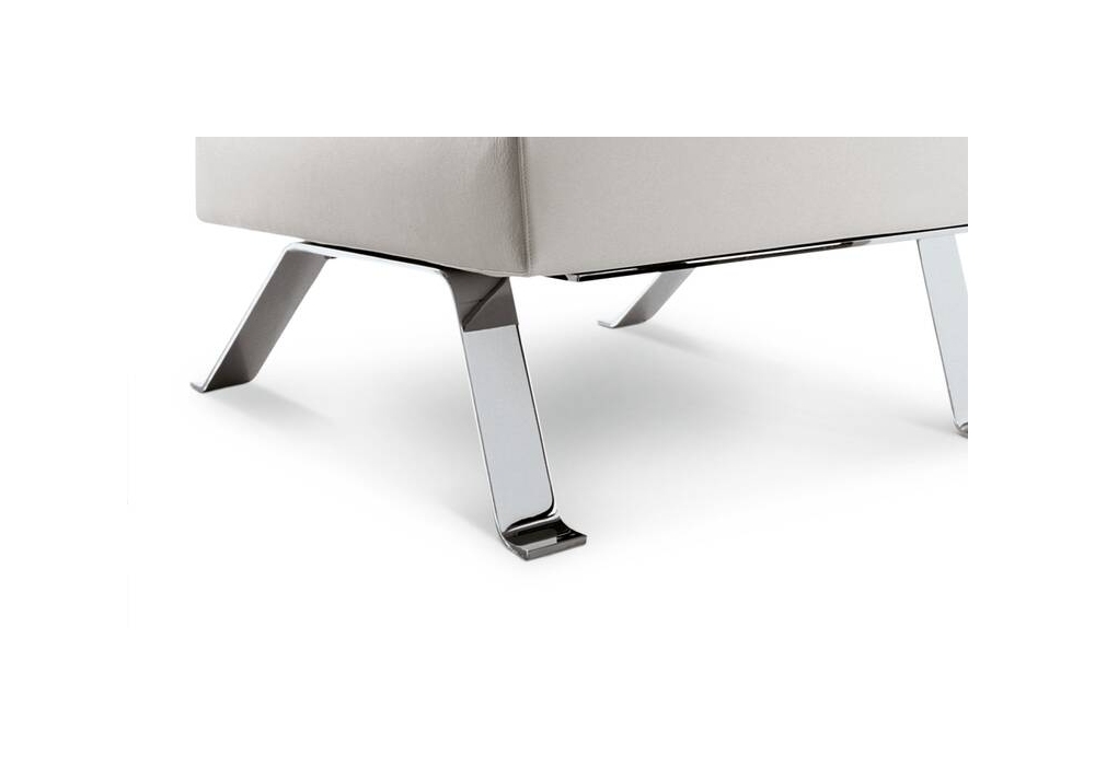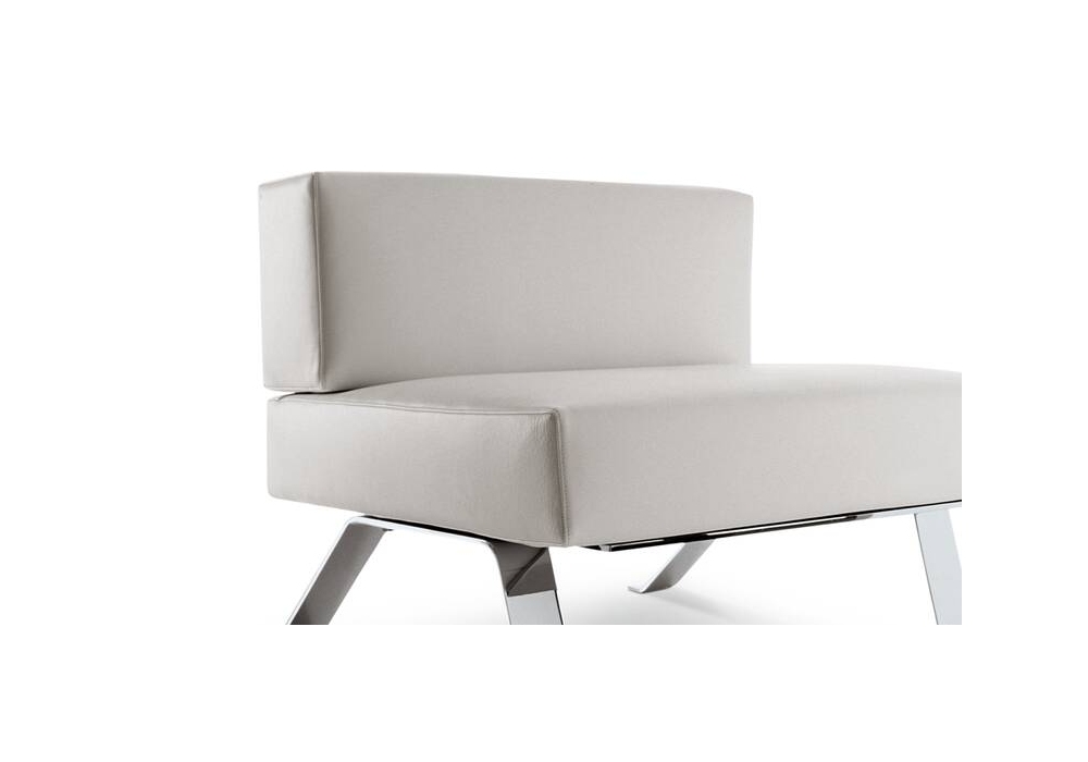 512 Ombra conçu par Charlotte Perriand pour Cassina est un fauteuil avec une structure en acier plat et une finition chromée polie. Il est rembourré de mousse polyuréthane et de ouate de polyester, et revêtu de tissu ou de cuir.