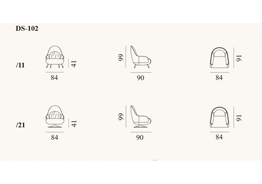 DS-102 conçu par Mathias Hoffmann pour De Sede est un fauteuil avec structure en bois de hêtre massif, le revêtement en cuir est disponible en différentes finitions. Pied version A en aluminium bruni et capuchon en cuir naturel / whisky ou noir. Version de pied B sur demande avec chrome poli ou autres revêtements, avec supplément.
