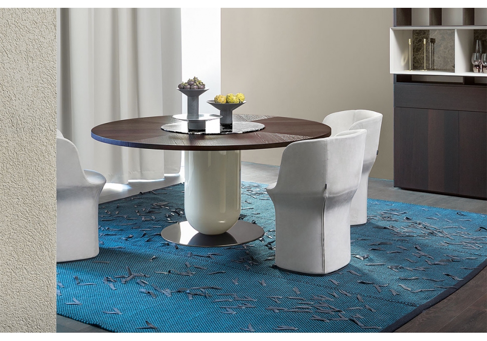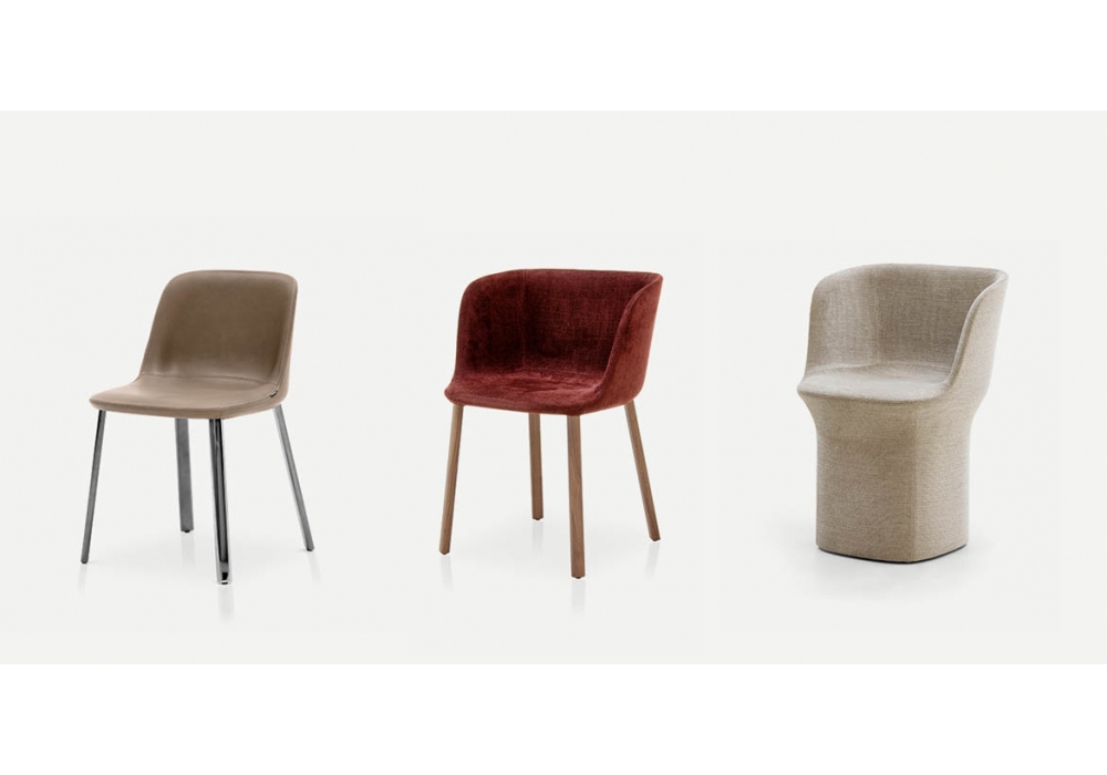 Esse conçu par Philippe Tabet pour Pianca est un fauteuil avec base pivotante à 360° avec retour automatique. Assise rembourrée moulée en mousse de polyuréthane et recouverte de tissu ou de cuir. La charnière est toujours gris foncé. La version avec revêtement amovible ne peut pas être réalisée en cuir.