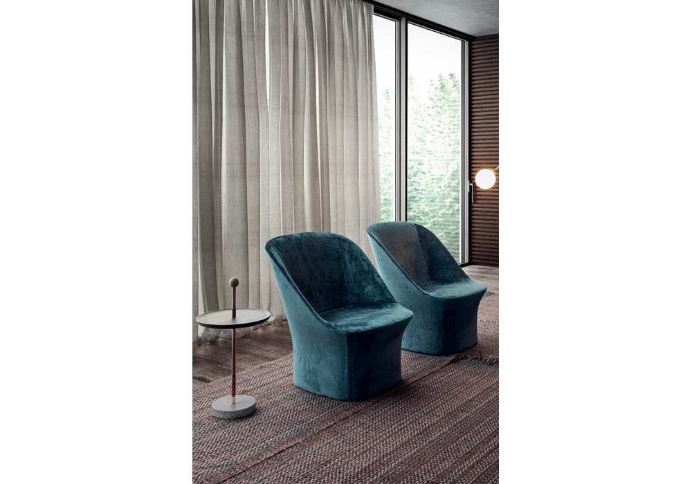 Esse Lounge conçu par Philippe Tabet pour Pianca est un fauteuil avec une base fixe ou pivotante à 360°. Assise rembourrée moulée en mousse de polyuréthane et recouverte de tissu ou de cuir. La version avec revêtement amovible ne peut pas être réalisée en cuir.