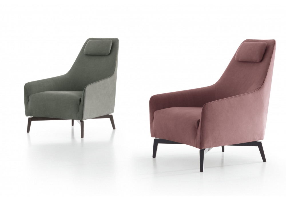 Carol conçu par Giuseppe Bavuso pour Alivar est un fauteuil réalisé avec structure Polymex recouverte de caoutchouc polyuréthane et doublure en fibre de polyester. Appui-tête magnétique et réglable. Base en frêne peint. Revêtement en cuir ou tissu. Coutures à l'entrejambe ton sur ton; coutures contrastées sur demande. Disponible avec pouf dans la même finition.