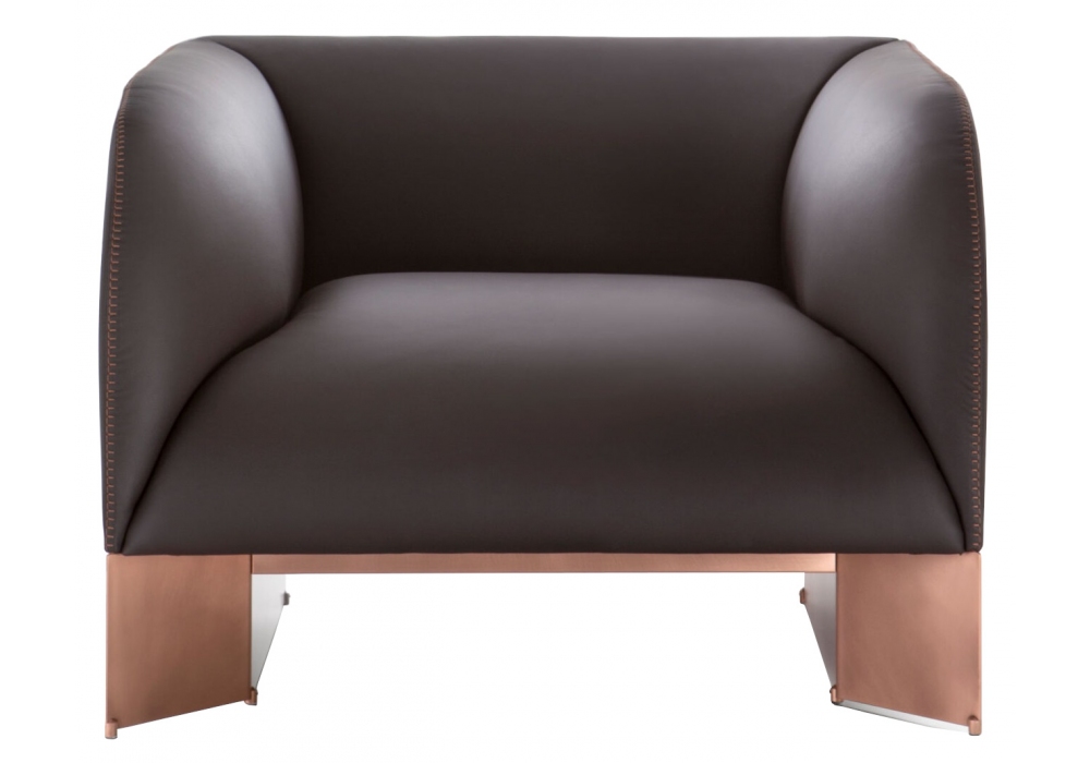 Caravan conçu par Emilio Nanni pour DeCastelli est un fauteuil avec dossier et accoudoirs en métal. Structure en bois monocoque avec rembourrage d'assise en mousse de polyuréthane. Tapisserie d'ameublement en cuir. Disponible en différentes finitions.