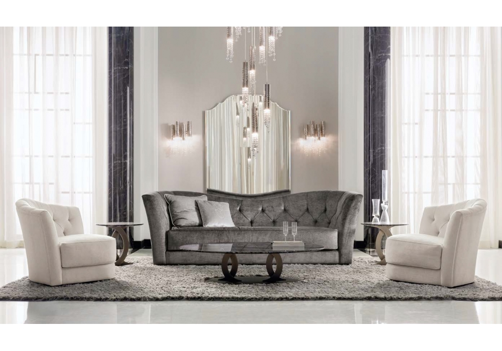 Butterfly conçu par Castello Lagravinese Studio pour Opera Contemporary est un fauteuil en plume avec rembourrage en mousse de polyuréthane, base en bois de hêtre et revêtement inamovible en cuir ou tissu.