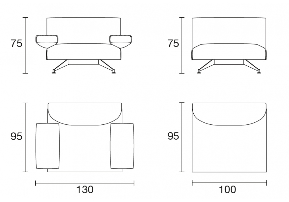 | Dimensions | 130x95 h 75 cm (con braccioli); 100x95 h 75 cm (senza braccioli). |