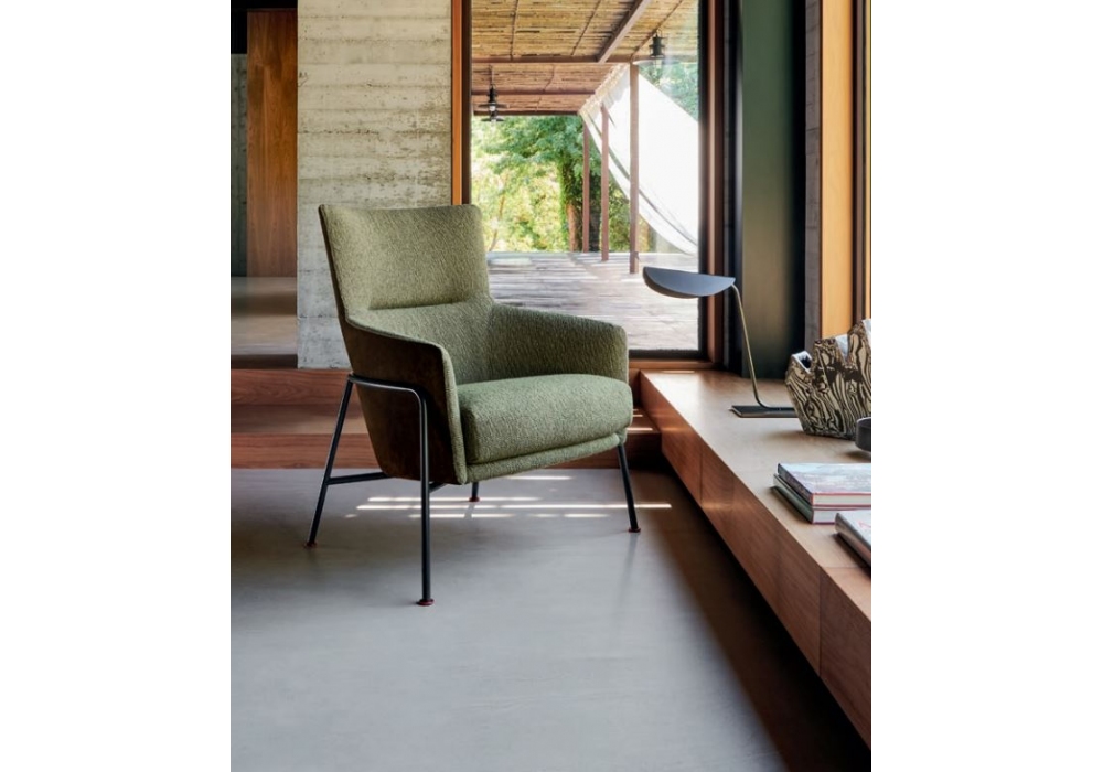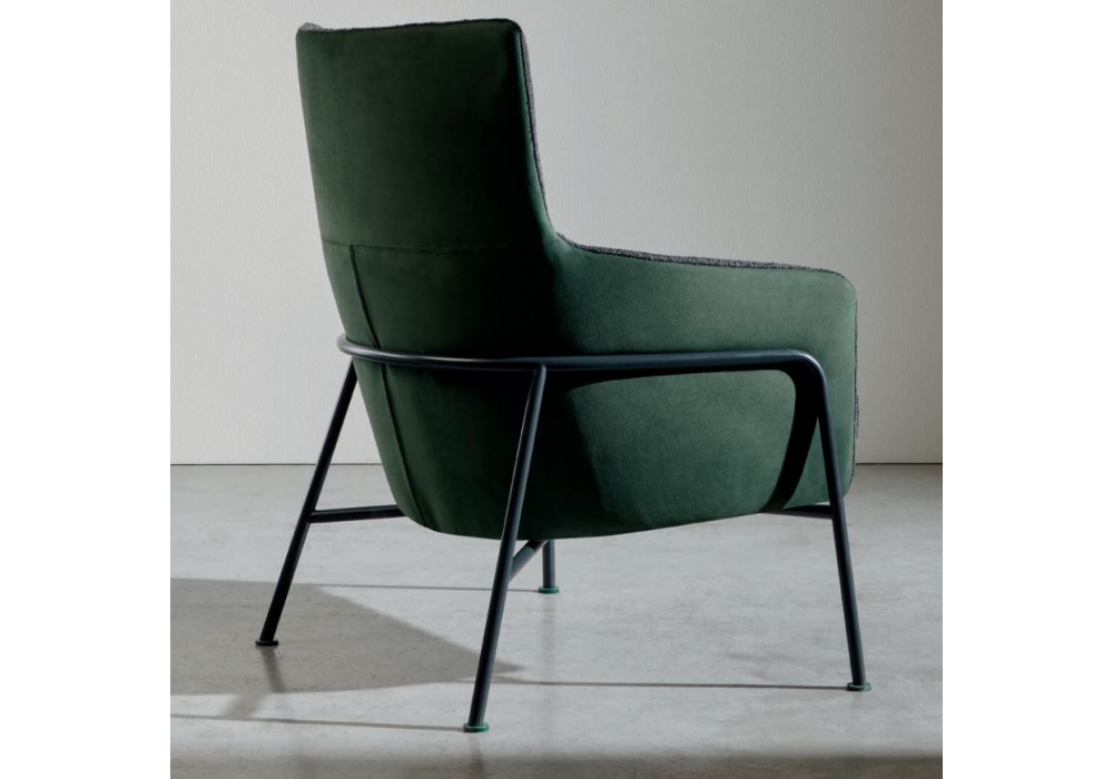 Adele conçu par Antonio De Marco pour Twils est un fauteuil avec rembourrage en mousse de polyuréthane, avec structure interne en MDF et fibre de bois et base en contreplaqué massif de peuplier et sapin. Les bâches externes et internes sont disponibles dans différents tissus et couleurs. Les pieds sont en métal peint en gris foncé et les pointes en 5 finitions.