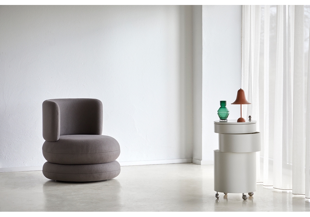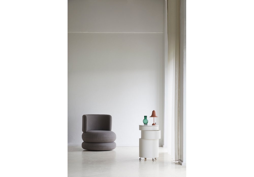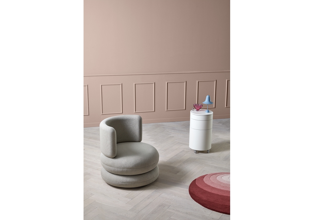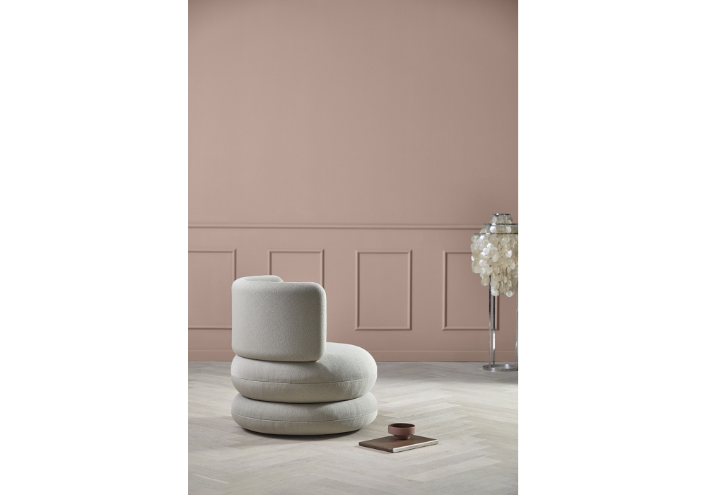 Easy Chair conçu par Verner Panton pour Verpan est un fauteuil entièrement rembourré avec base en MDF noir avec coussinets en feutre. Structure en contreplaqué de mousse CMHR certifié FSC & TSCA avec rembourrage en différents tissus.