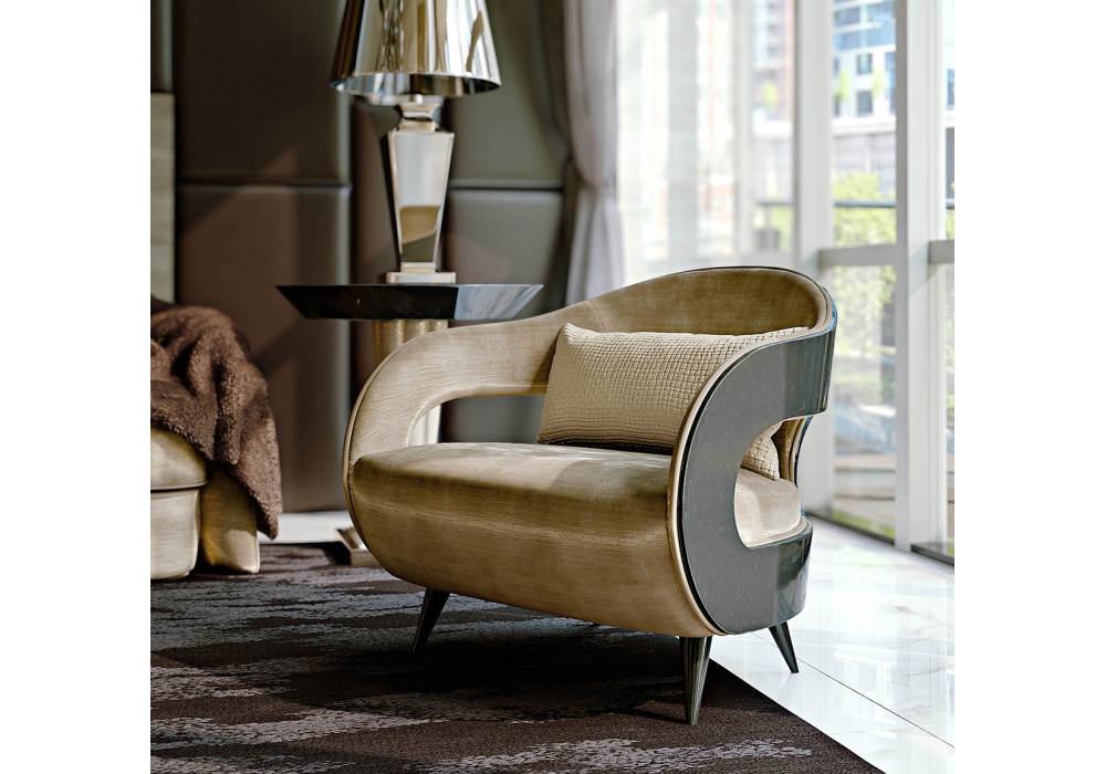 Miller conçu et produit par Turri est un fauteuil avec structure en contreplaqué et bois massif avec finition polyester brillante décorée à la main. Rembourrage en mousse de polyuréthane multi-densité avec pré-revêtement en ouate de polyester et revêtement en différents tissus ou cuirs. Pieds assortis à la structure.