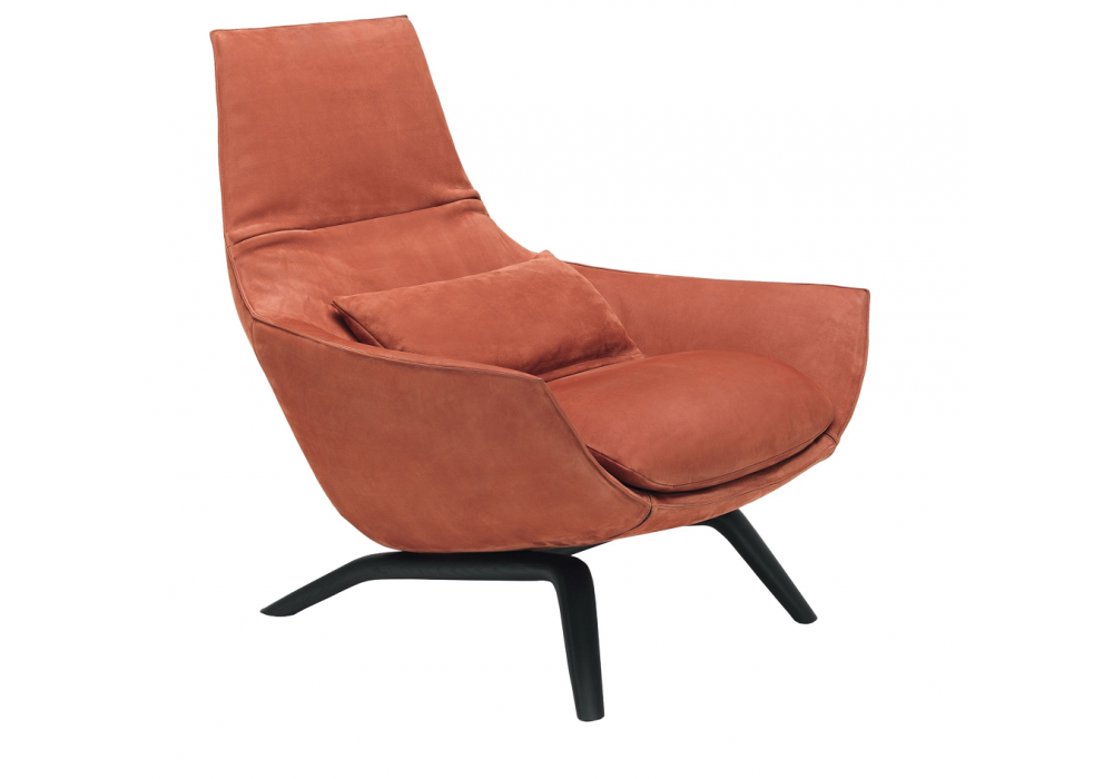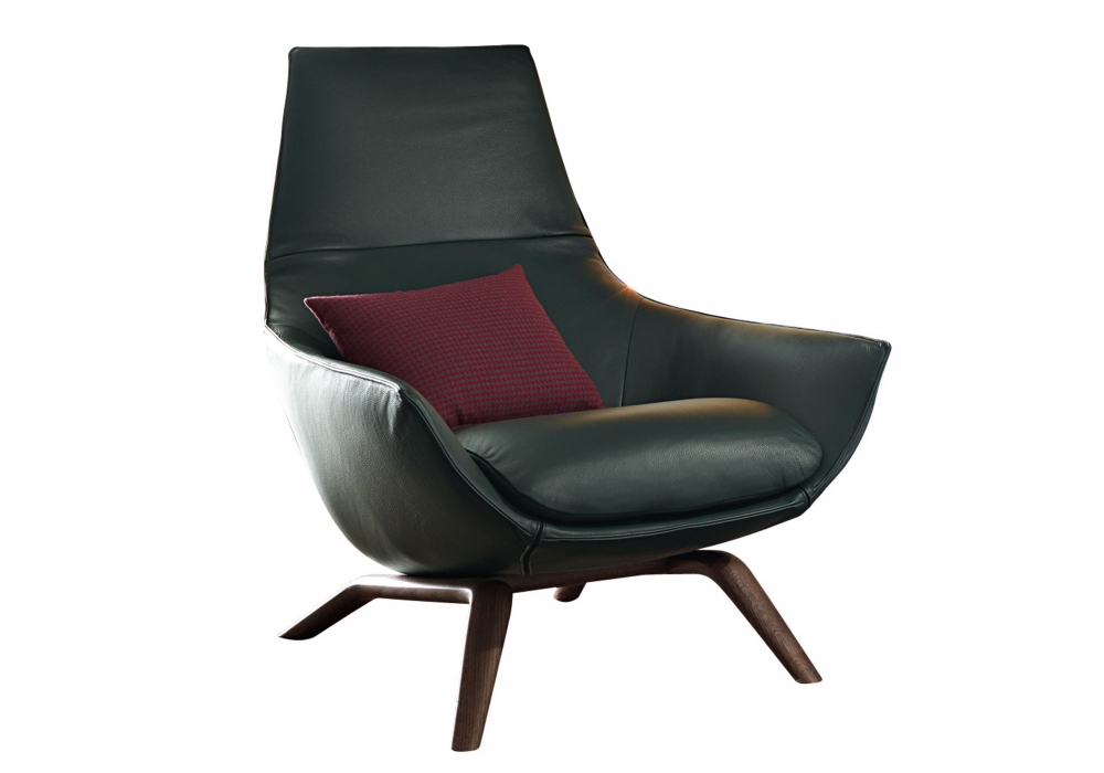 Ermes conçu par Mauro Lipparini pour MisuraEmme est un fauteuil réalisé avec une base fixe artisanale en chêne massif teinté et coque en polyuréthane expansé à froid avec revêtement en tissu ou cuir, amovible par un personnel expert. Sur demande, il est possible de recouvrir l'avant du fauteuil avec un tissu différent de l'arrière.