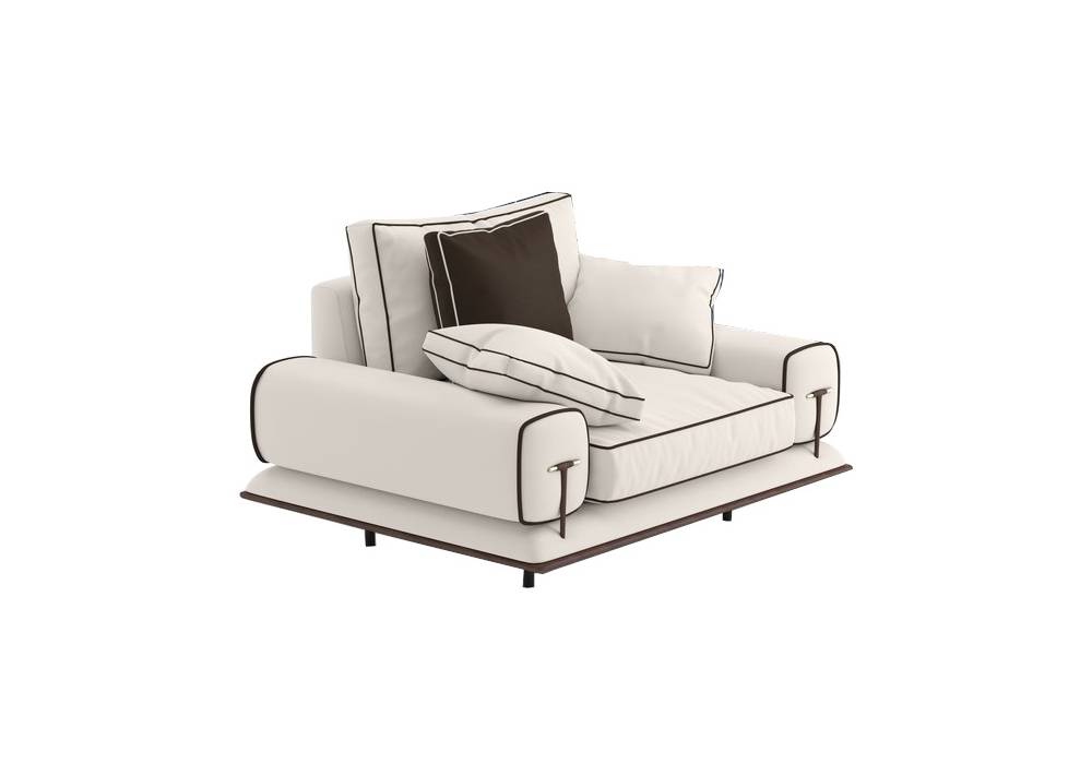 Blues conçu par Giuseppe Viganò pour Turri est un fauteuil avec structure en bois massif et contreplaqué rembourré de mousse de polyuréthane multi-densité et structure portante en métal. Rembourrage en différents tissus ou cuirs non déhoussables. Les pieds sont en métal finition gris anthracite avec des pieds en matière plastique. Détails en noyer massif avec parties métalliques en différentes finitions.