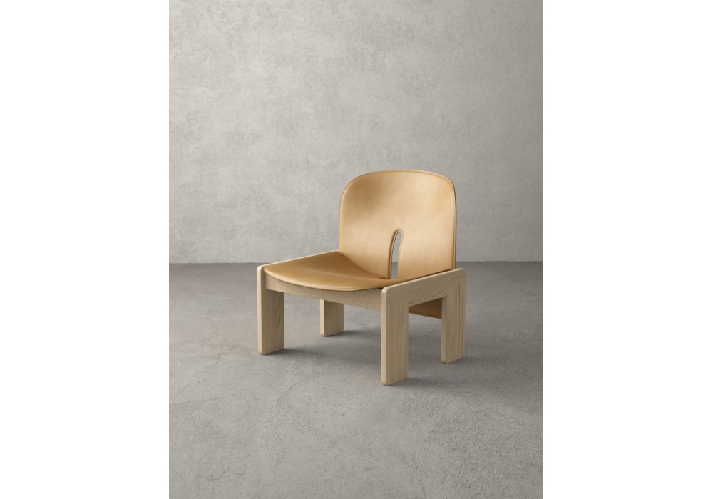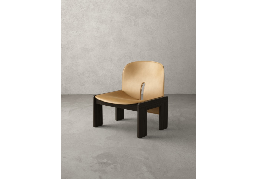 Scarpa 925 conçu par Afra & Tobia Scarpa pour Karakter est un fauteuil réalisé avec une structure en frêne massif, un revêtement en cuir sellier et des patins en plastique.