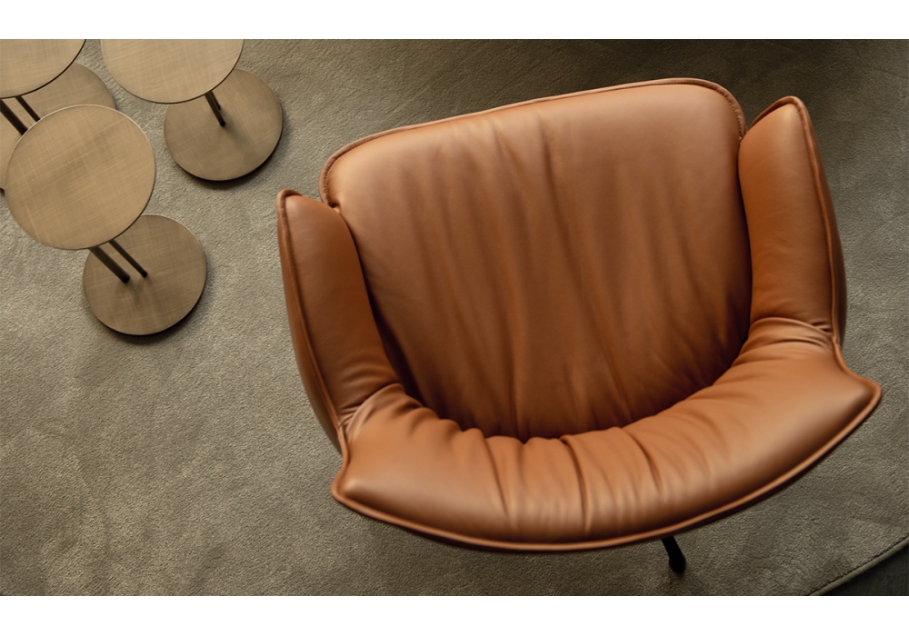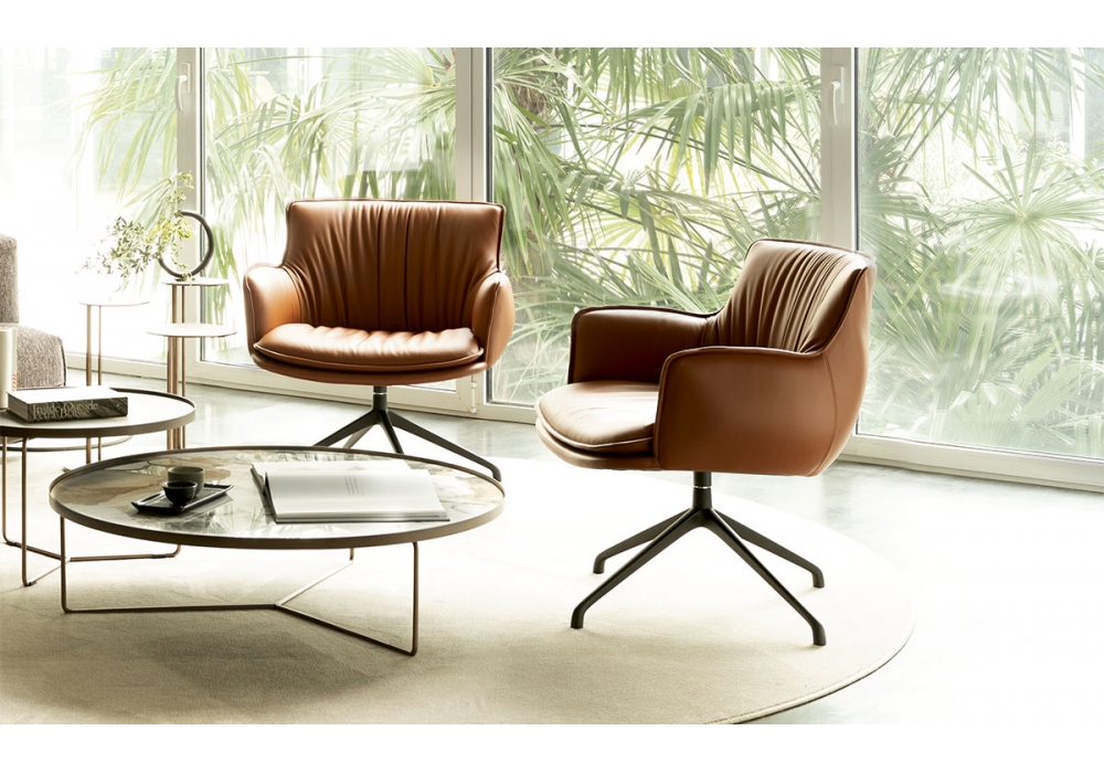 Rhonda Lounge conçu par Luca Signoretti pour Cattelan Italia est un fauteuil pivotant avec base à 4 branches en aluminium peint, revêtement en tissu, micro nubuck, éco-cuir ou cuir. Disponible en différentes finitions et tailles.